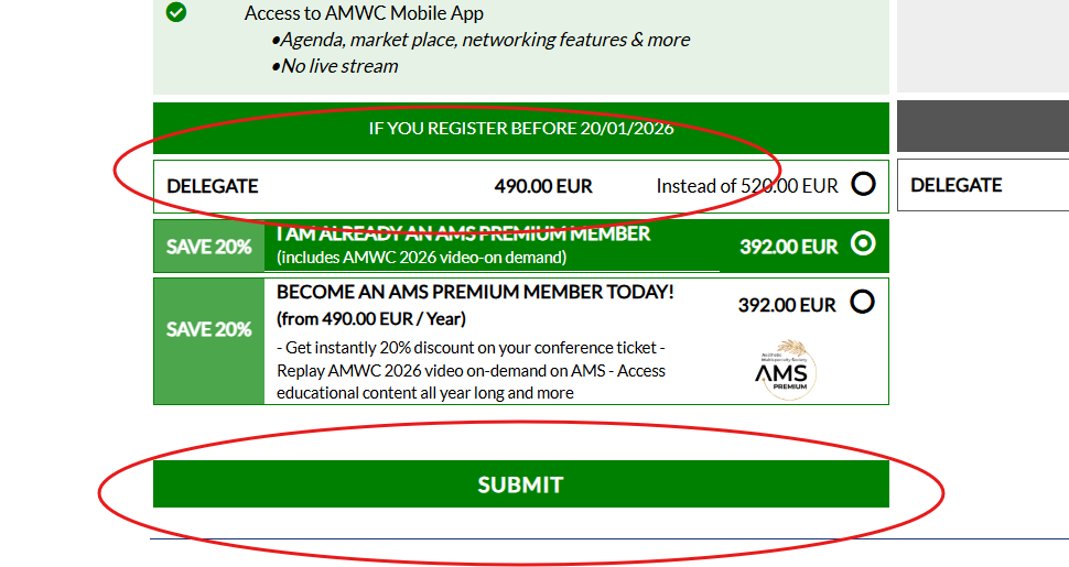 If you already have active Premium membership, select "I am already an AMS Premium member" when registering for our events and click submit: